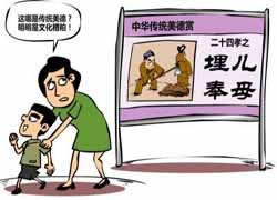 - 5000年中華文化有精華也有糟粕,我們現(xiàn)代人應(yīng)棄其糟粕揚(yáng)其精華。比如“二十四孝”的典型故事。亦因此,街頭公益廣告孝道不加篩選的直接頭文并茂的選用 “埋兒奉母”的故事,的確有亟待商榷的地方。但問題是,凡事都要一分為二的看,分析一則公益廣告的妥否,也要放在這一宣傳的大背景下來(lái)考量,不應(yīng)單一的選擇性看問題。...[詳細(xì)]