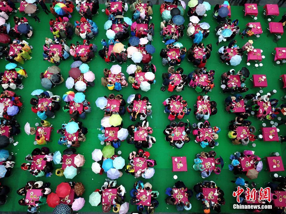 千人冒雨品嘗牡丹宴 “傘陣”林立五彩斑斕