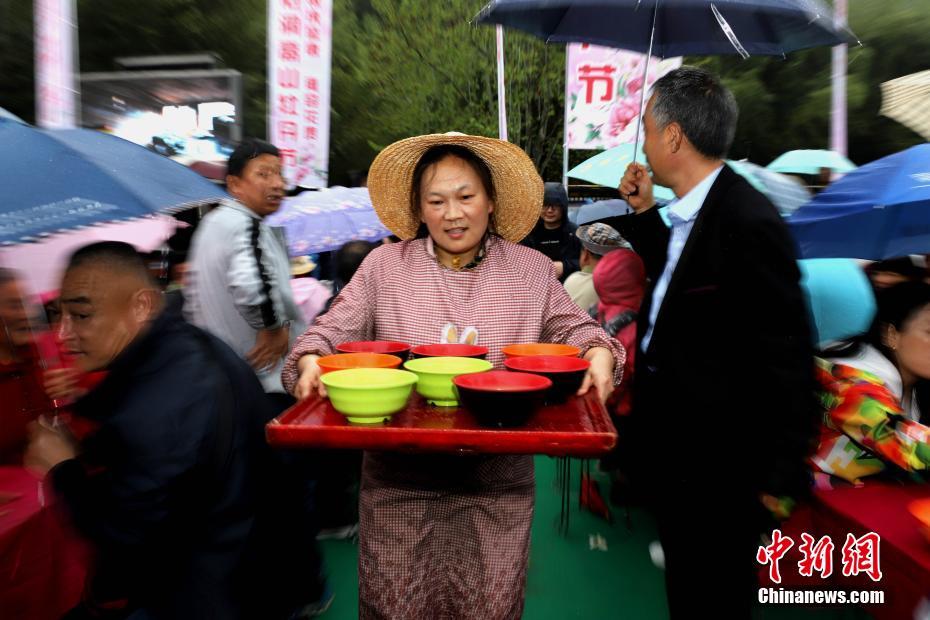 千人冒雨品嘗牡丹宴 “傘陣”林立五彩斑斕