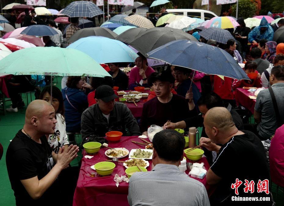 千人冒雨品嘗牡丹宴 “傘陣”林立五彩斑斕