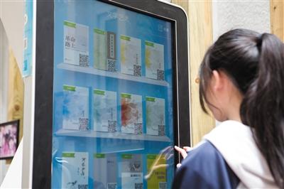 北京師范大學(xué)第三附屬中學(xué)學(xué)生在學(xué)校電子閱讀屏前瀏覽圖書。新京報記者李強攝