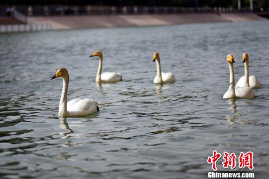 四月底五月初這個季節(jié)天鵝飛臨庫爾勒很少見。 汪濤 攝