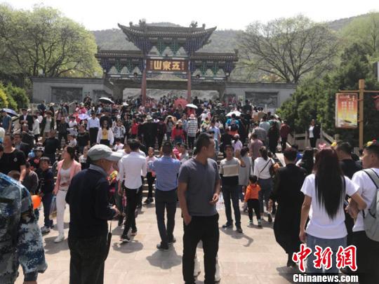 5月1日,烈日當(dāng)空,蘭州民眾絲毫未被影響,走出家門,享受假日時(shí)光。圖為五泉山景區(qū)迎來(lái)大批“游客”?!“瑧c龍 攝