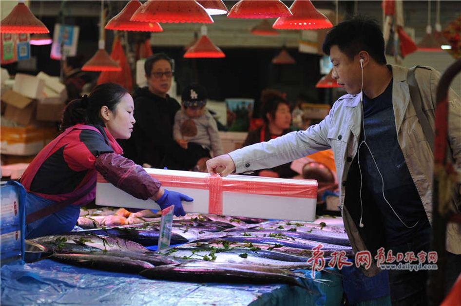 5月2日,黃渤海、東海已進(jìn)入休漁期,青島海鮮市場種類豐富、價(jià)格穩(wěn)定,受歡迎的春鲅魚保持在每市斤25元,與休漁期前價(jià)格一致。其他海鮮價(jià)格依舊,過度平穩(wěn)。(“青島觀”攝影師王海濱)
