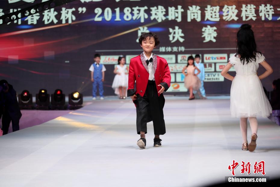 5月6日晚,可愛的小模特在T臺(tái)上走秀,舉手投足間有模有樣。當(dāng)晚,“尉州春秋杯”2018環(huán)球時(shí)尚超級(jí)模特大賽河南總決賽在河南尉氏縣舉行。中新社記者王中舉攝