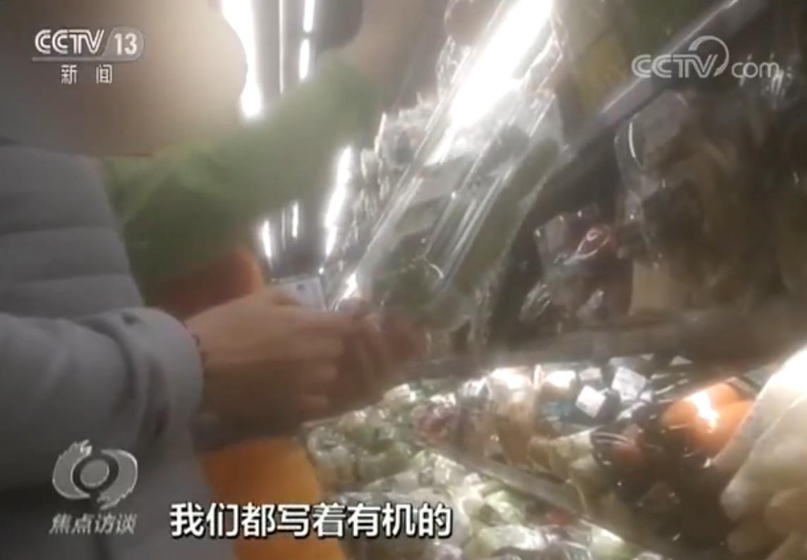 記者注意到,一排貨架的上方寫著“有機蔬菜”幾個字,但據(jù)了解,貨架上擺放的卻并非全都是有機菜,有的是無公害蔬菜。