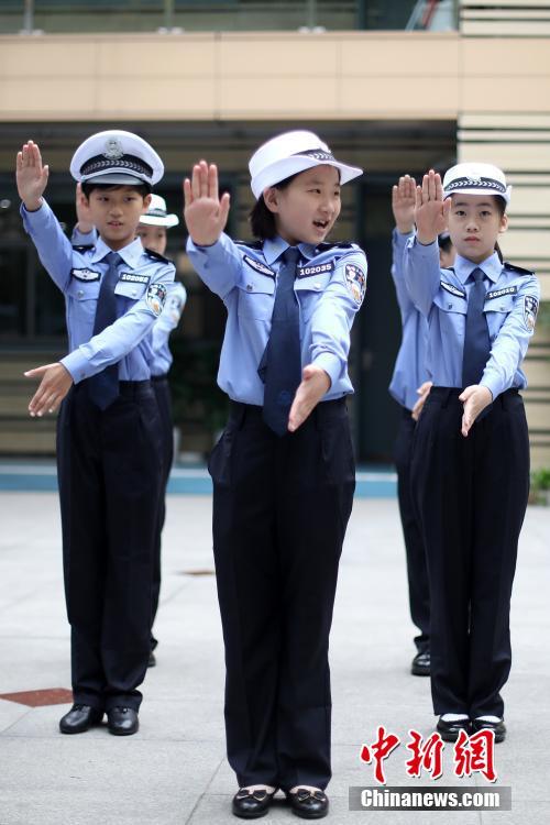 5月8日,南京少年交警隊(duì)長江路小學(xué)分隊(duì)正式成立,10名小交警走上護(hù)學(xué)崗,在南京交警在線主持人的帶領(lǐng)下維持校門口交通秩序,發(fā)放文明出行手繪書簽。當(dāng)日正值南京交警機(jī)動大隊(duì)鐵騎中隊(duì)成立一周年,孩子們坐上巡邏摩托,體驗(yàn)騎警感受。中新社記者泱波攝
