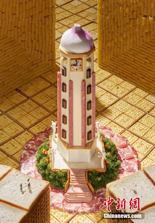 近日,重慶7名青年用9800種食材耗時一個半月時間造出當(dāng)?shù)?座網(wǎng)紅地標(biāo)建筑?!昂檠露础?、“重慶大劇院”、“長江索道”、“李子壩輕軌穿樓”、“解放碑”等網(wǎng)紅地標(biāo)建筑,通過面條、餅干、臘肉、辣椒、土豆、山藥、黑芝麻等傳統(tǒng)食材組裝而得以再次呈現(xiàn)。據(jù)了解,7位制作者是來自廣告界和美食攝影界的重慶本地人,他們用9800種食材,搭建6座重慶地標(biāo)建筑,是希望以一種浪漫又特別的方式去呈現(xiàn)他們眼中重慶的樣子,從而表達(dá)他們對這座土生土長城市的熱愛。圖為用食材制作而成的地標(biāo)建筑“解放碑”。胡椒攝