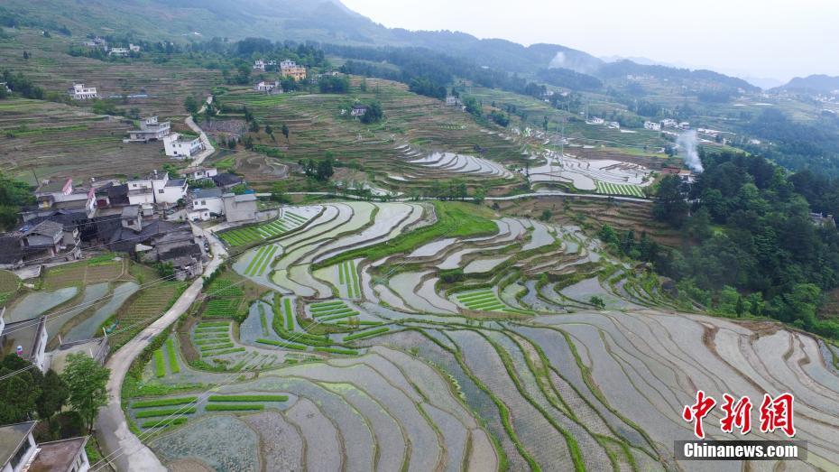 5月9日,堯龍山梯田高低錯落。堯龍山梯田位于貴州省遵義市桐梓縣堯龍山鎮(zhèn)。中新社發(fā)瞿宏倫攝