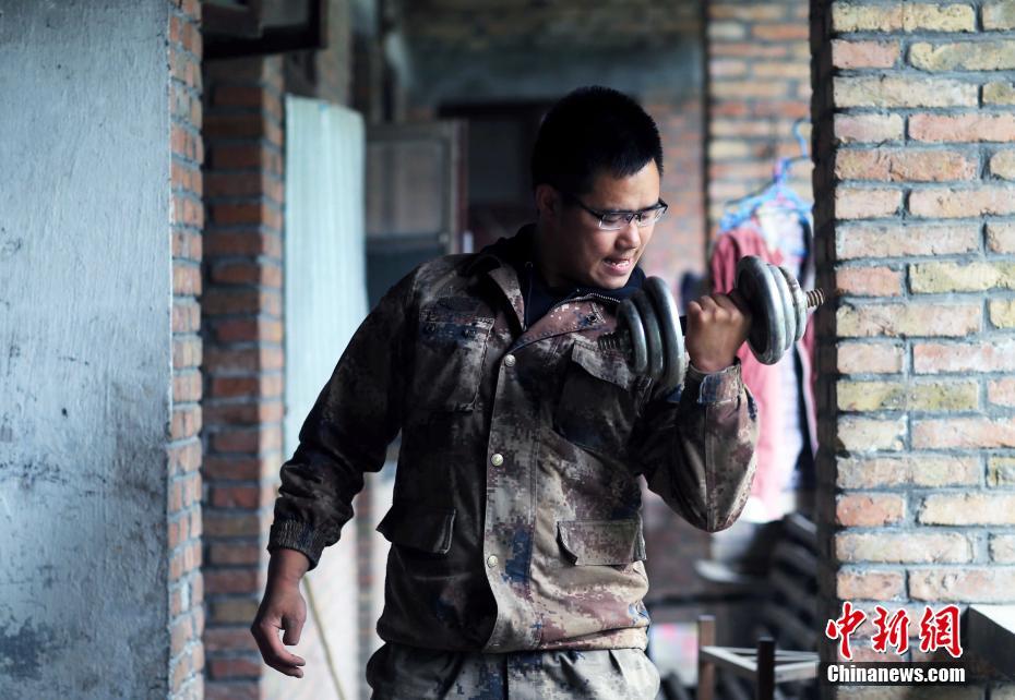5月9日,楊志敏閑暇之時(shí)不忘健身訓(xùn)練。四川天全縣28歲小伙楊志敏經(jīng)歷“5·12”汶川特大地震和“4·20”蘆山強(qiáng)烈地震后,發(fā)現(xiàn)家鄉(xiāng)仍然處于貧困落后地步,鄉(xiāng)親增收難。2014年大學(xué)畢業(yè)的他放棄月薪上萬(wàn)的健身教練職業(yè),辭職回鄉(xiāng)創(chuàng)業(yè)養(yǎng)豬,帶動(dòng)鄉(xiāng)親增收致富。中新社記者王磊攝