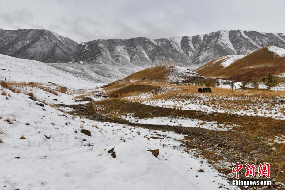 雪后覓食的牦牛。武雪峰攝