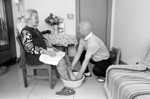 在孩子們的精心照顧下,胡瑞霞除了腿腳不太好、耳朵有點(diǎn)背以外,身體還不錯(cuò)。她每天早上5時(shí)許就起床了,先喝一杯蜂蜜水、一杯牛奶,吃一碗雞蛋羹,就讓孩子用輪椅推著到公園溜達(dá)。她簡(jiǎn)單活動(dòng)活動(dòng)身體,看看風(fēng)景,跟其他老人聊聊天,兩個(gè)小時(shí)后才回家,然后正式吃早餐。去年起,因?yàn)橥饶_不便,她下樓比較少,就在家里活動(dòng)。每天下午,胡瑞霞午休后要喝茶水,一暖壺水都能喝完,還要吃南瓜子和水果。每天晚飯后,值班的兒女都會(huì)給她洗腳、泡腳,兩個(gè)女兒每周給她洗一次澡。