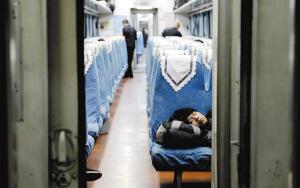 一位乘客在列車上睡著了。大約在兩年前,列車改成了空調(diào)車以后,環(huán)境舒適了許多。