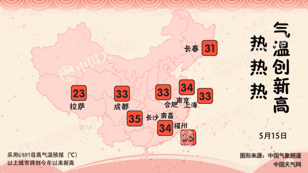 預(yù)計到17日和18日前后,隨著一股冷空氣東移南下,南方“火熱”天氣才會稍稍冷卻,屆時長江以北大部分地區(qū)也將告別30℃。