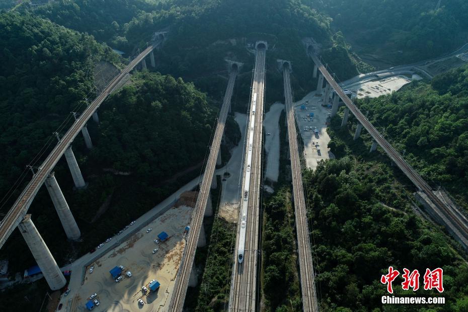 5月16日,航拍貴陽市郊交織的五條高鐵線路,一列動車駛出隧道。貴州省地處中國西南腹地,高原山地居多,因此高鐵建設的橋隧占比較高。在貴陽市烏當區(qū)新添寨,高鐵滬昆線、貴廣客運專線、貴開城際客運專線的隧道和橋梁交織在一起,形成“五洞五橋”并行。中新社記者賀俊怡攝