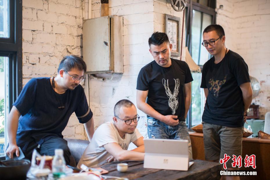 在蘇式的空間里討論文創(chuàng)方案。徐小毛(左三)、歐陽(yáng)丁華(左一)、韋寧(左二)感覺(jué)文思泉涌。三人希望通過(guò)自己的努力,吸引到更多的文創(chuàng)企業(yè),把這些蘇式建筑改造成文創(chuàng)基地。劉宇俊攝
