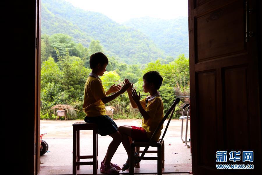 今年9歲的張香華(左)與雙胞胎妹妹張香蘭玩拍手游戲。新華社記者胡晨歡攝圖片來源:新華網(wǎng)