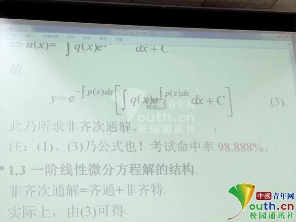 趙海良的“甄嬛體”高數(shù)課堂一經(jīng)西南交通大學(xué)官方微博發(fā)布后,便吸引了網(wǎng)友們的評論。網(wǎng)友@煙雨疏斜評論:“這樣的老師給我來一把。”網(wǎng)友@小包同學(xué)的工科男Alex表示:“看樣子是要期末了?!本W(wǎng)友@四戚說:“哈哈哈哈哈我愛趙老師。”網(wǎng)友@lastwd1221評論:“模糊數(shù)學(xué)上趙老師講切肉絲?!本W(wǎng)友@eejieo評價:“老師夠時髦!”(記者 李華錫 通訊員 趙壯杰)