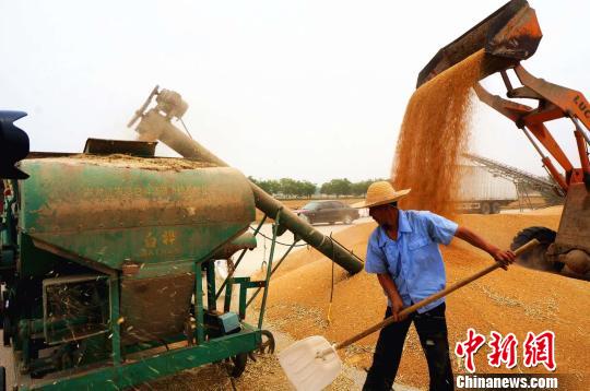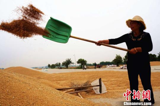 圖為一位工人正將麥粒中的雜質(zhì)隨風(fēng)揚(yáng)去?!№n章云攝