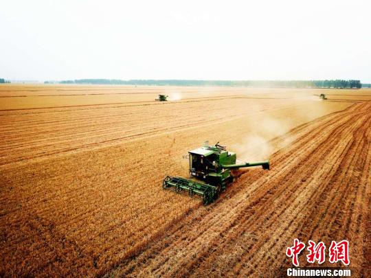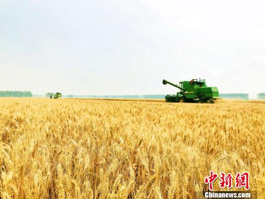 小麥大收期間,河南省黃泛區(qū)農(nóng)場每天出動收割機(jī)200多臺,全場10萬畝小麥預(yù)計(jì)5日內(nèi)可全部收割完畢。 韓章云攝