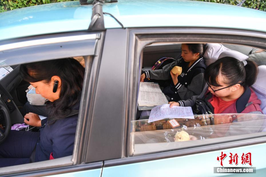 6月8日,考生在“愛心送考”車上復(fù)習(xí)。當(dāng)日,昆明“雷鋒出租汽車隊”在昆明第一中學(xué)西山學(xué)校門前等待參加2018年高考的學(xué)生,他們將免費把學(xué)生送到各自的考場。據(jù)了解,該車隊已經(jīng)堅持“愛心送考”15年不間斷。中新社記者任東攝