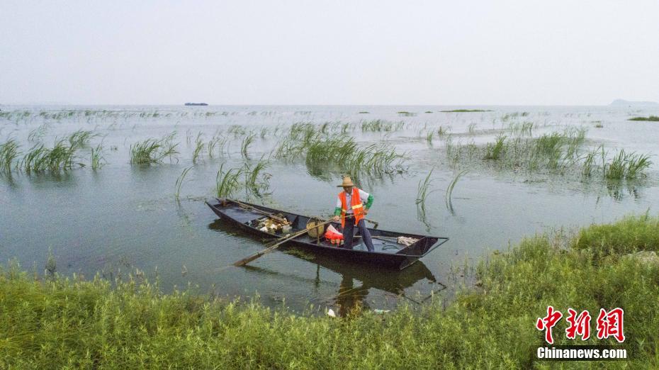 鄱陽(yáng)湖水位上漲 水上保潔凈家園