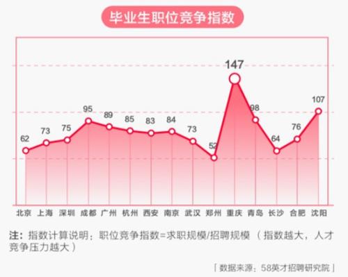 有意思的是,報告還發(fā)布了“畢業(yè)生職位競爭指數”,指數顯示,外地生源最青睞的重慶,也是畢業(yè)生職位競爭指數最高的城市,而鄭州職位競爭指數相對較小。