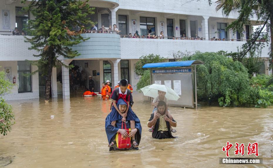 校園進(jìn)水被淹,救援人營(yíng)救轉(zhuǎn)移被困師生。梁衛(wèi)東攝