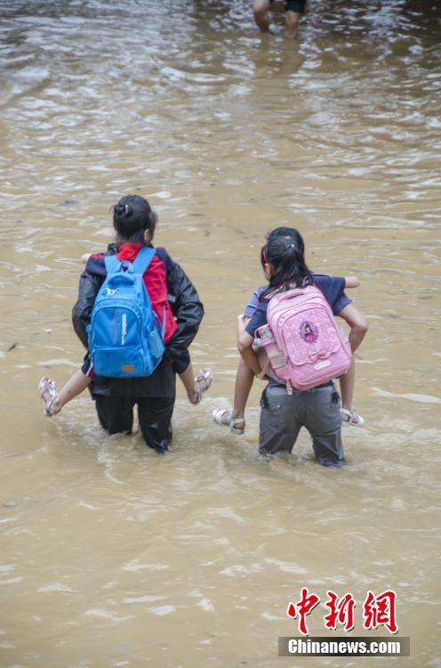 救援人員背著孩子轉(zhuǎn)移。梁衛(wèi)東攝