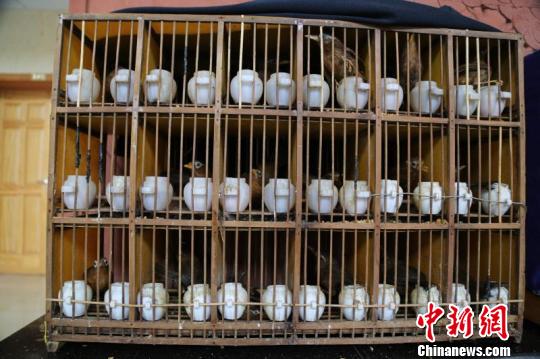 記者9日從云南省昆明市森林公安局獲悉,昆明、文山兩地森林公安聯(lián)合破獲一起非法收購(gòu)、運(yùn)輸、出售野生動(dòng)物案,查獲涉案野生動(dòng)物畫眉375只、鷓鴣18只、鵪鶉7只、斑鳩1只。