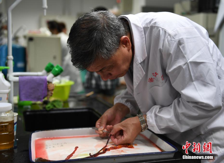 7月10日,浙江大學(xué)教授正在解剖黃鱔。當(dāng)日,浙江大學(xué)與杭州市市場(chǎng)監(jiān)管局開(kāi)展解剖黃鱔、對(duì)比不同類(lèi)型蛋黃、水洗面團(tuán)等實(shí)驗(yàn),破解黃鱔養(yǎng)殖中使用避孕藥、“兵乓球雞蛋”是假雞蛋、面條含有塑化劑和明膠的謠言。中新社記者王剛攝