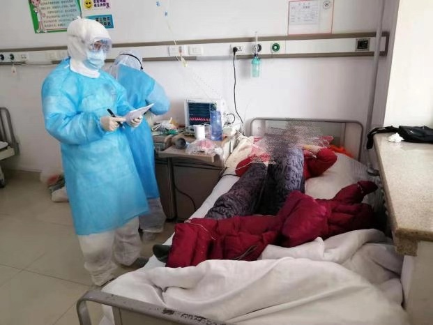 就這樣,我來(lái)不及收拾行囊、簡(jiǎn)單帶了幾件生活用品,趕緊去參加院里召開(kāi)的緊急會(huì)議,下午三點(diǎn),由王政院長(zhǎng)親自帶隊(duì)、我們五名醫(yī)生、五名護(hù)士組成的醫(yī)療隊(duì)立即從黑龍江省醫(yī)院出發(fā),驅(qū)車火速趕往確診病例集中的綏化市第一醫(yī)院。晚上6點(diǎn)左右正式到達(dá)綏化市第一醫(yī)院的綜合大樓門前。因疫情嚴(yán)峻,我們醫(yī)療隊(duì)爭(zhēng)分奪秒的要了解確診患者的病情,沒(méi)時(shí)間去住宿的地方,隨身帶的行李就放在車上,第一時(shí)間我們就和這里一線的醫(yī)務(wù)人員及院領(lǐng)導(dǎo)對(duì)接、緊急開(kāi)會(huì)。當(dāng)天晚上的會(huì)議一直持續(xù)到第二天凌晨,我們初步了解了重癥患者的病情,同時(shí)緊急布置了接下來(lái)的工作內(nèi)容。