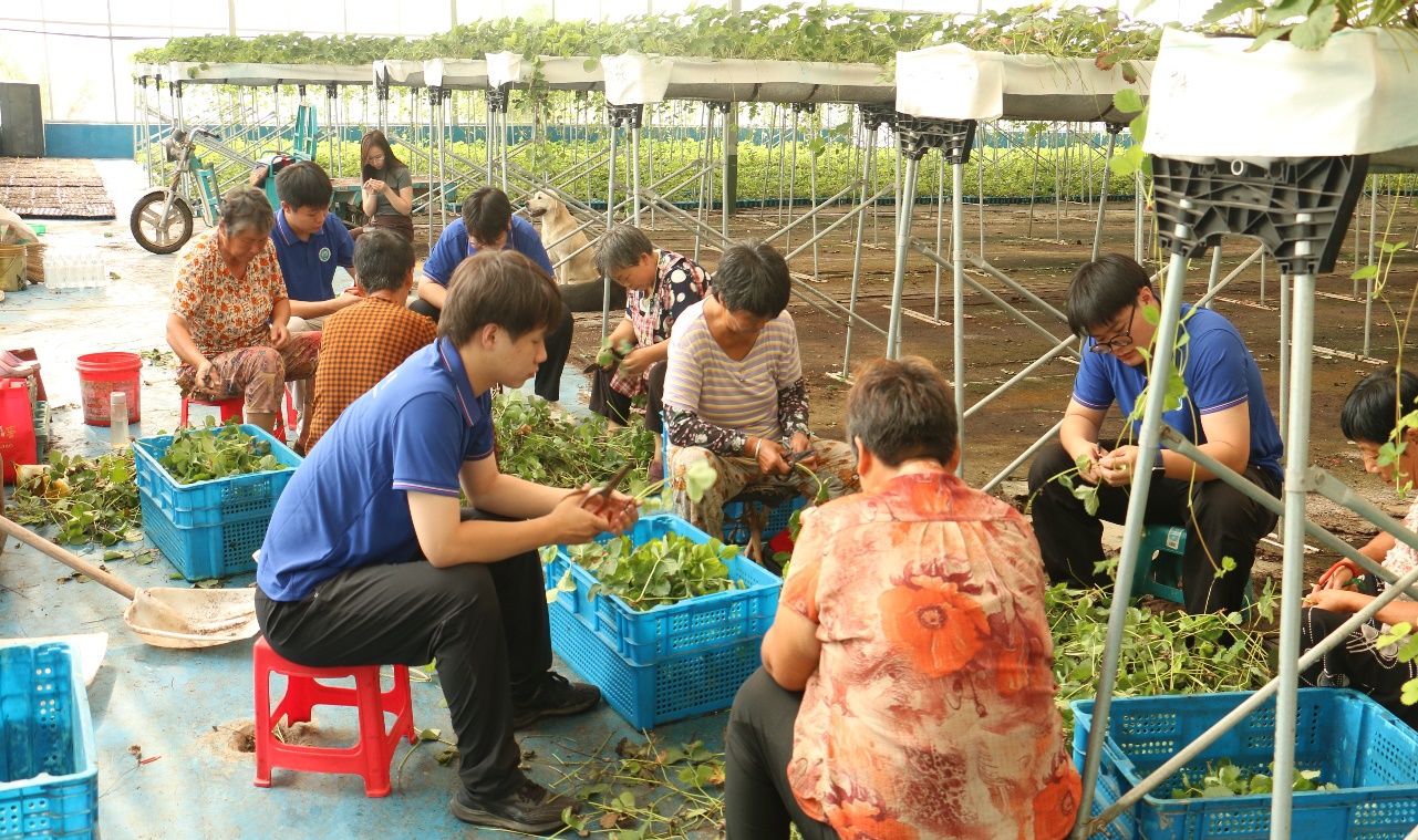 在凱駿農(nóng)業(yè)示范園,一部分學生與基地負責人進行訪談,用成本核算知識梳理“每顆草莓的成本構(gòu)成”;另一部分學生則參與育苗育種,體會精細化管理對效益的影響。