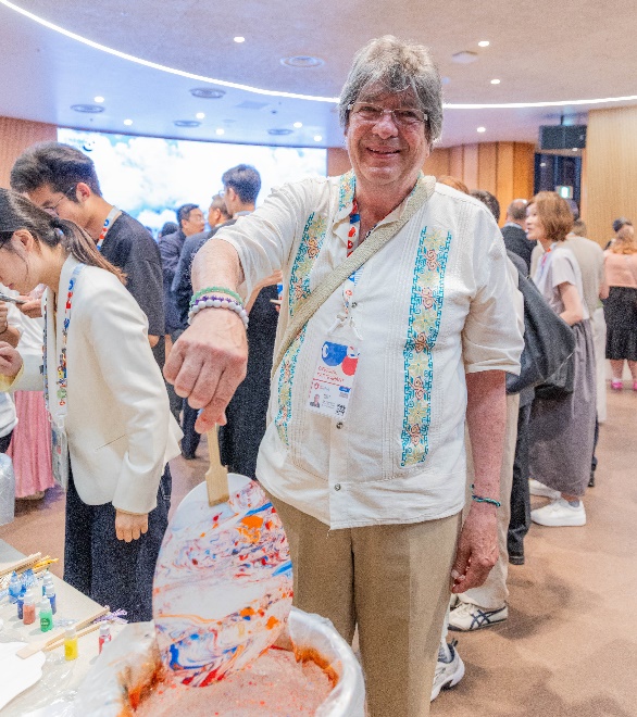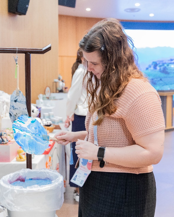 為了讓嘉賓更深入感受東方生活的雅趣,現(xiàn)場特別設(shè)置了中國非遺漆扇制作體驗(yàn)區(qū)。漆扇作為中國傳統(tǒng)手工藝品,通過漂漆技藝讓彩漆在水面自然流淌,并定格于扇面上,形成獨(dú)一無二的紋樣與色彩?,F(xiàn)場嘉賓紛紛動手參與,制作屬于自己的中國風(fēng)扇子,留下了一份珍貴的文化記憶。
