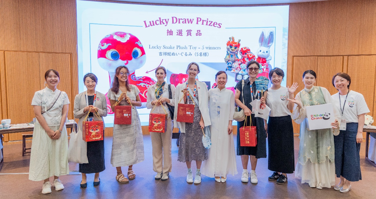 幸運(yùn)抽獎環(huán)節(jié)將現(xiàn)場氣氛推向高潮。印有中國國家旅游宣傳形象“你好?中國”的精美茶具套裝、熊貓毛絨玩具、“茶和天下”限定甄選茶葉及吉祥蛇玩偶令嘉賓期待滿滿,現(xiàn)場笑語不斷,氣氛熱烈歡騰。