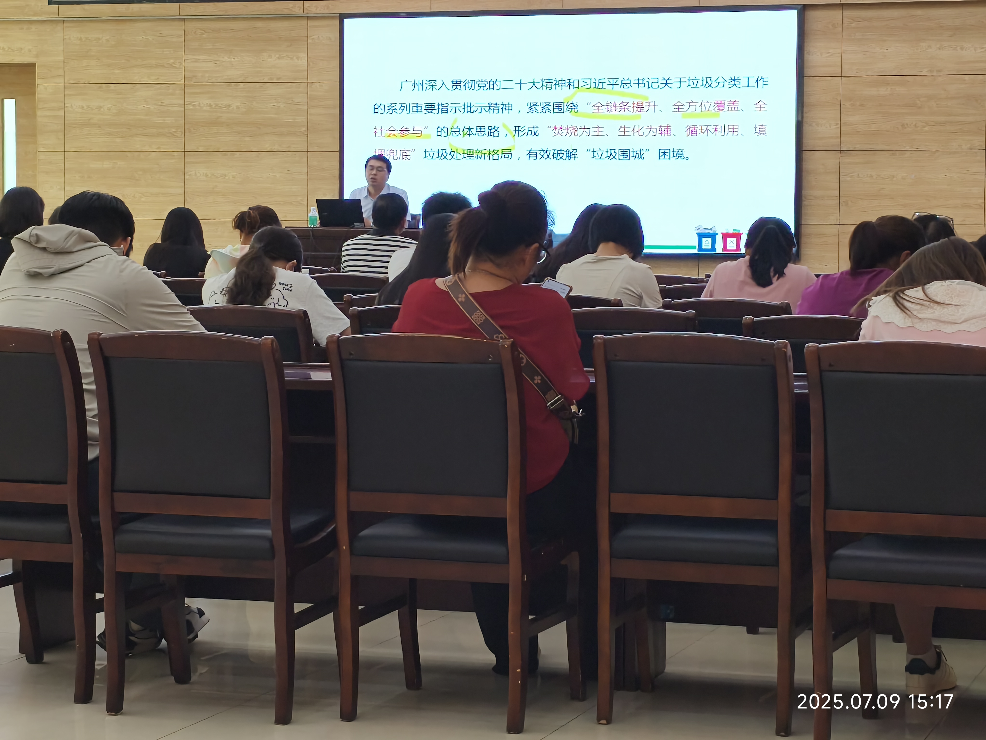 為進(jìn)一步提升轄區(qū)內(nèi)物業(yè)行業(yè)生活垃圾分類管理水平,推動(dòng)生活垃圾分類工作精準(zhǔn)落地,推動(dòng)生活垃圾分類工作在轄區(qū)內(nèi)的深入開展。2025年7月9日,廣州市南沙區(qū)東涌鎮(zhèn)開展物業(yè)單位生活垃圾分類專場(chǎng)培訓(xùn),會(huì)議邀請(qǐng)專業(yè)講師進(jìn)行專題授課,轄內(nèi)物業(yè)公司工作人員、村(社區(qū))相關(guān)負(fù)責(zé)人、督導(dǎo)員等代表共50余人參與了本場(chǎng)培訓(xùn)。