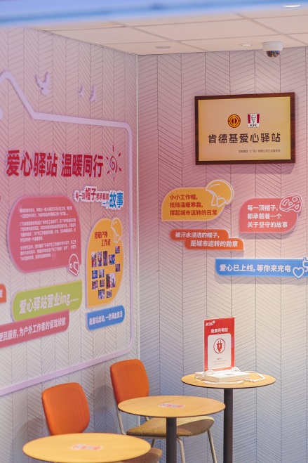 餐廳的墻壁上,還貼滿了暖心的話語:“累了歇一歇,喝口水再出發(fā)”“能量站啟動,一秒滿血復活”“愛心已上線,等你來充電”……肯德基愛心驛站宛如一座功能完備的“能量補給加油站”,關注著新業(yè)態(tài)戶外勞動者的需求,為他們提供一個能夠讓疲憊得以緩解、身心能夠放松的溫馨場所。