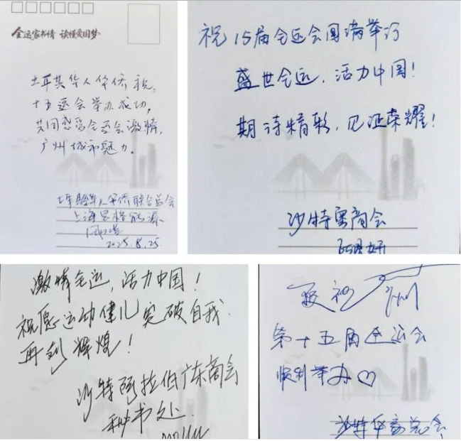 借此次訪問交流契機,多位土耳其和沙特僑胞親手書寫了“全運家書”?!白J暹\會圓滿成功!”“懷赤子南國心,期盼中華健兒再創(chuàng)輝煌?!薄@些家書字句樸實、情感真摯,承載著對祖國和家鄉(xiāng)的思念,對十五運會舉辦的美好祝愿。