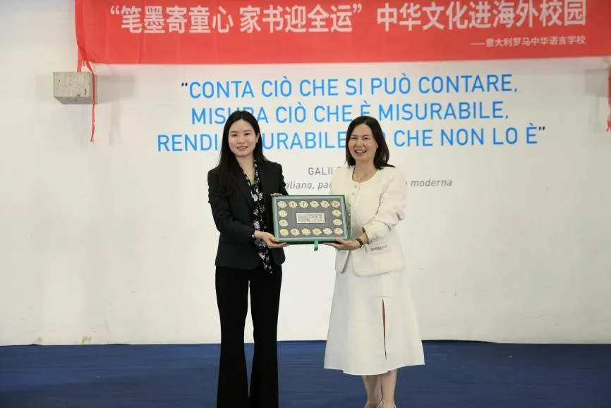 李凱倫向羅馬中華語(yǔ)言學(xué)校贈(zèng)送十五運(yùn)會(huì)文創(chuàng)產(chǎn)品