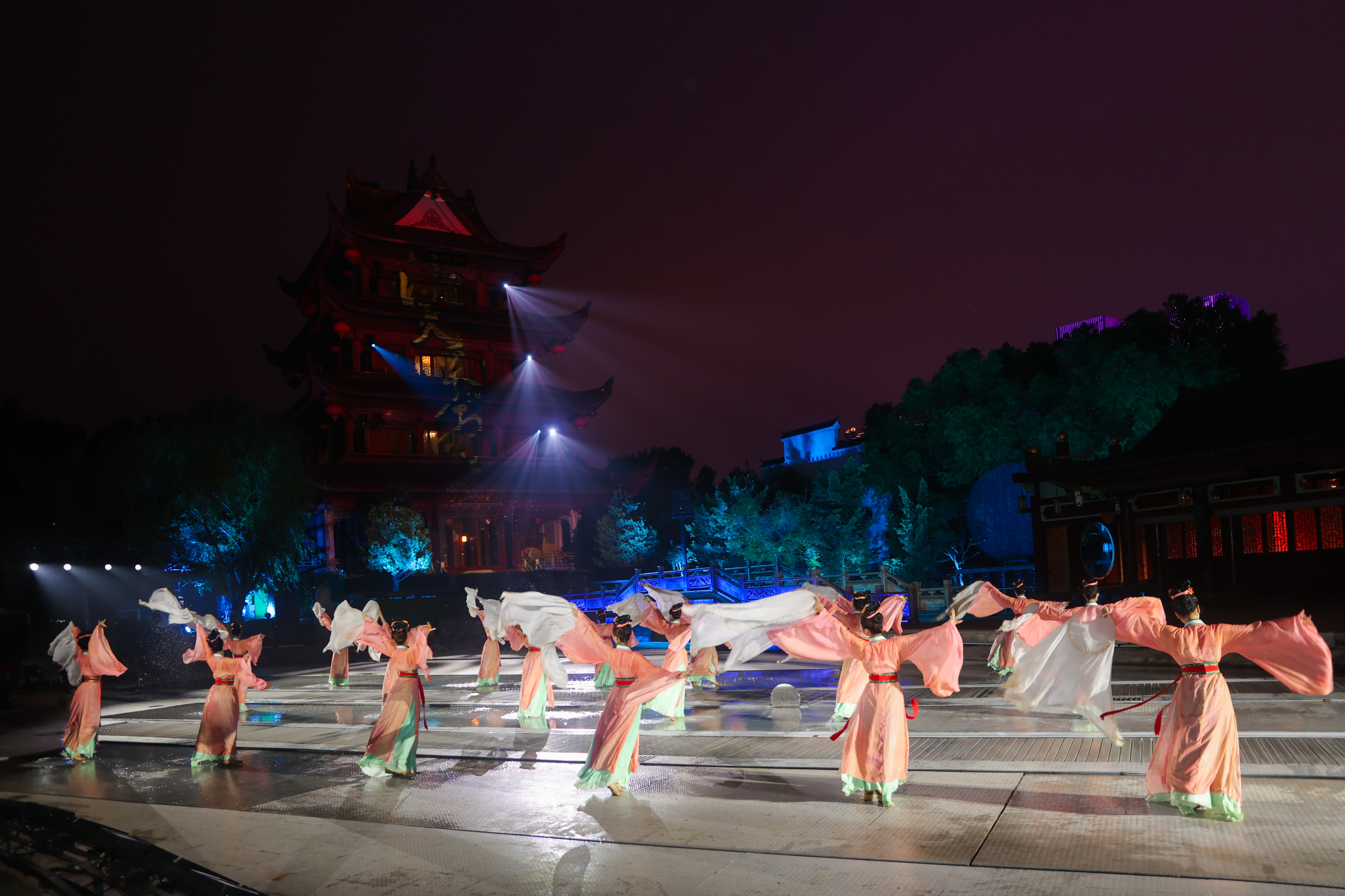 夜幕降臨,由湖南華夏集團(tuán)全新打造的江天暮雪光影劇場(chǎng)流光溢彩。“兩情湘粵全運(yùn)接棒”主題活動(dòng)如約啟幕。