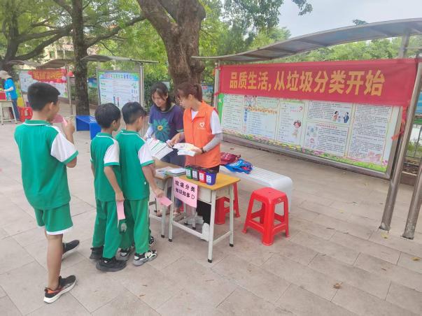 在活動(dòng)中,工作人員利用宣傳小冊(cè)子,詳細(xì)講解垃圾的四種分類(可回收物、有害垃圾、廚余垃圾、其他垃圾)以及常見垃圾的分類歸屬,如紙張、塑料瓶屬于可回收物;電池、過期藥品屬于有害垃圾;剩菜剩飯、果皮果核屬于廚余垃圾;陶瓷碎片、用過的紙巾屬于其他垃圾等。通過舉例和互動(dòng)問答的方式,加深小學(xué)生對(duì)垃圾分類知識(shí)的理解。