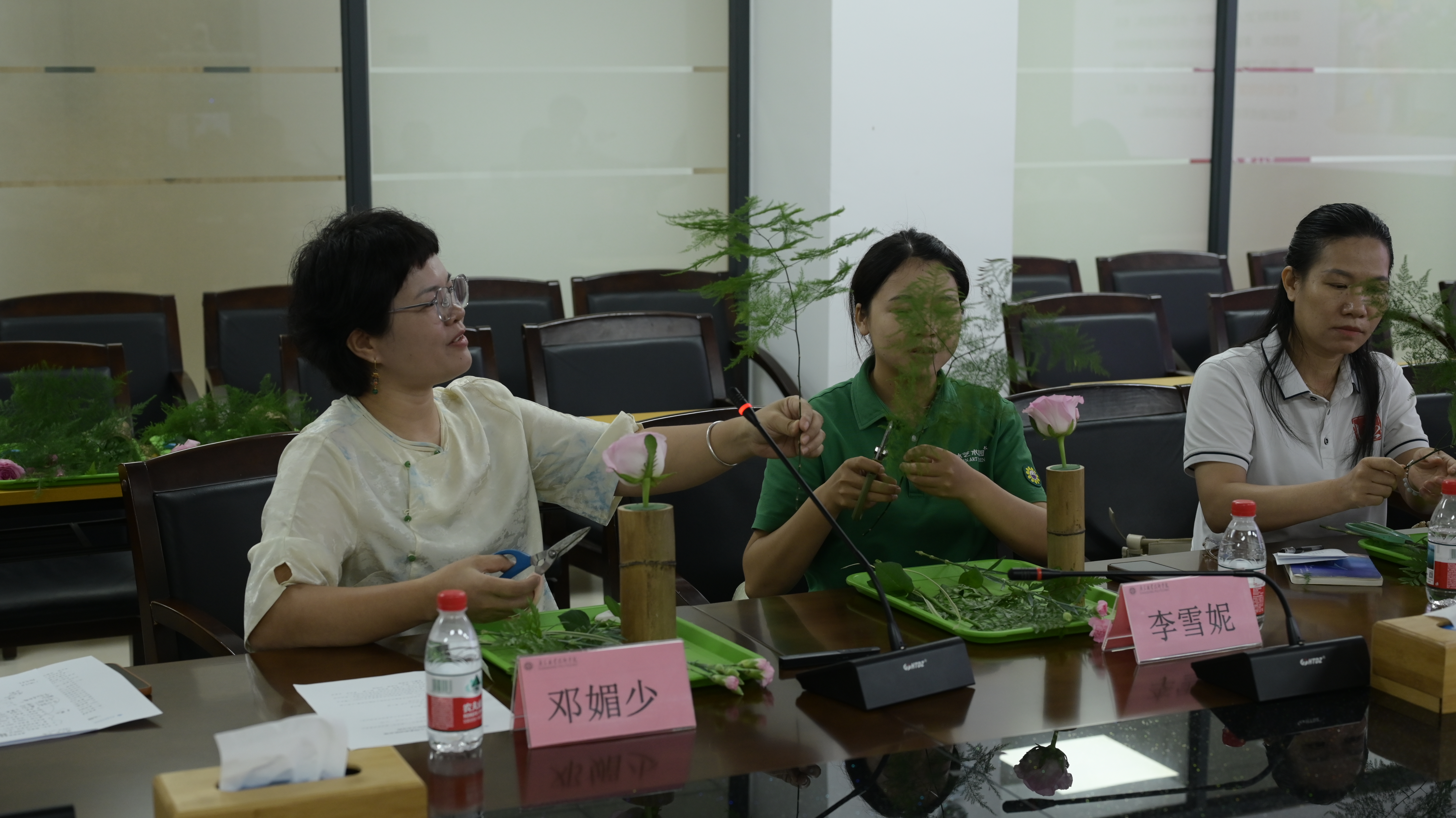 在研討會現(xiàn)場的課程體驗環(huán)節(jié),鄧媚少以“花藝療愈”為主題,帶領(lǐng)與會者親身體驗插花藝術(shù)帶來的心靈療愈力量。她表示,花藝創(chuàng)作是一種能夠引發(fā)“心流”狀態(tài)的體驗,有助于緩解焦慮、提升專注力,為青少年心理疏導(dǎo)提供了自然生動的實踐載體。吳曉芝圍繞“自然療愈與藝術(shù)療愈的融合”的主題展開分享,結(jié)合《布谷鳥》音樂體驗活動,生動展示多維感官療法在情緒疏導(dǎo)中的獨特作用。她認(rèn)為,藝術(shù)療愈是“向內(nèi)的鏡子”,自然療愈是“向外的窗戶”,二者有機結(jié)合,有望為青少年心理健康教育開辟嶄新的實踐方向。兩位專家的實操體驗和療愈分享引發(fā)研討會現(xiàn)場與會人員的積極反響和深入討論,對訓(xùn)練基地下一階段建設(shè)提出了一系列建設(shè)性意見。