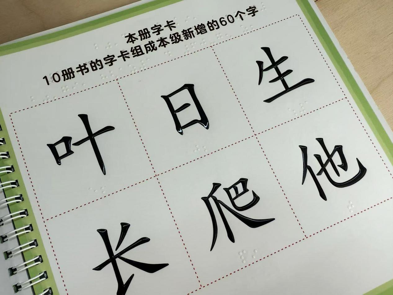在活動現(xiàn)場可以看到,這套特別版的《小羊上山》確實與眾不同:書后的字卡上每個漢字的筆畫都微微凸起,指尖輕撫能清晰感知筆畫的走向;在《樂樂猜字謎》中,漢字謎語以浮雕形態(tài)呈現(xiàn);《太陽和八大行星》則通過觸感差異,讓孩子們用手就能"看見"星體的大小對比。