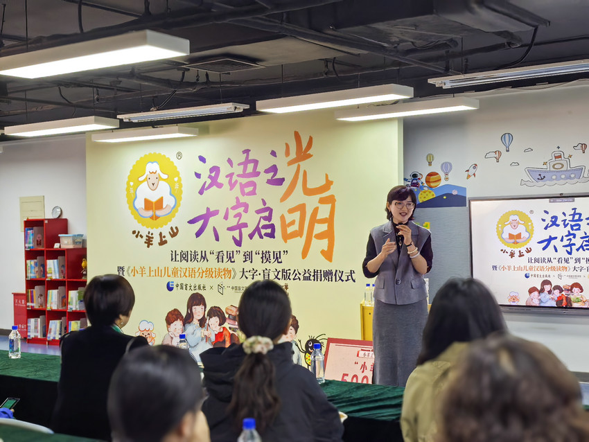 10月15日國際盲人節(jié),《小羊上山兒童漢語分級讀物》大字盲文版公益捐贈儀式在中國盲文圖書館舉行。當《小羊上山》執(zhí)行主編許立春第一次觸摸到剛剛印制好的這套樣書時,她說:"這就是我們一直在尋找的答案。"