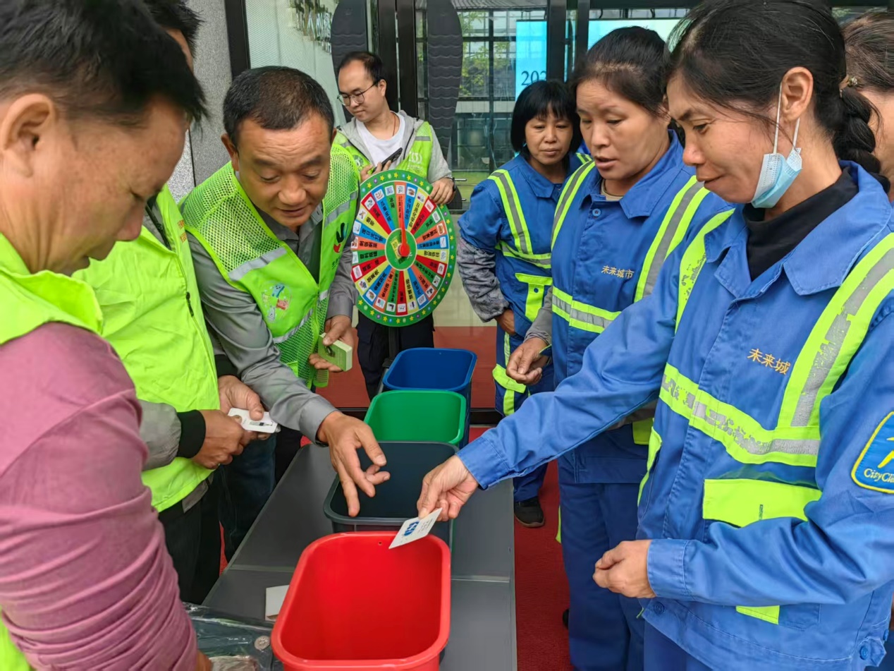 隨后,在“低碳講堂”環(huán)節(jié)中,打破了傳統(tǒng)單向宣傳的束縛,引入了系統(tǒng)化、體驗(yàn)式的宣傳模式。志愿講師通過(guò)圖文并茂的PPT演示,顯著增強(qiáng)了科普的實(shí)效性和感染力。他們向環(huán)衛(wèi)工人們?cè)敿?xì)解讀了可回收物、有害垃圾、廚余垃圾及其他垃圾的分類標(biāo)準(zhǔn)與投放要求,有效助力環(huán)衛(wèi)工人構(gòu)建起清晰、準(zhǔn)確的分類知識(shí)體系,使環(huán)保知識(shí)深入人心。