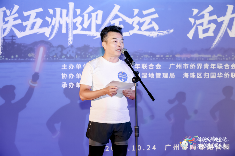 啟動儀式上,廣東省僑聯(lián)黨組成員、副主席兼秘書長、廣東僑界青年聯(lián)合會主席陳農(nóng)灝在致辭中表示,在廣東省僑聯(lián)的領(lǐng)導下,廣東僑青聯(lián)始終致力于凝聚僑青力量,發(fā)揮其視野開闊、融通中外的優(yōu)勢,積極投身粵港澳大灣區(qū)建設(shè)。他指出,本次熒光夜跑正是僑界青年支持全運、祝福灣區(qū)的最真摯表達,希望通過僑青的網(wǎng)絡(luò)將全運熱情與灣區(qū)活力傳向世界。