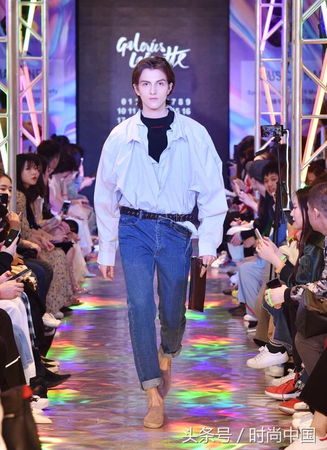 大長(zhǎng)腿張超則以Ann Demeulemeester印花襯衫搭配Heliot Emil緞質(zhì)長(zhǎng)褲,演繹出了古典與現(xiàn)代的平衡。