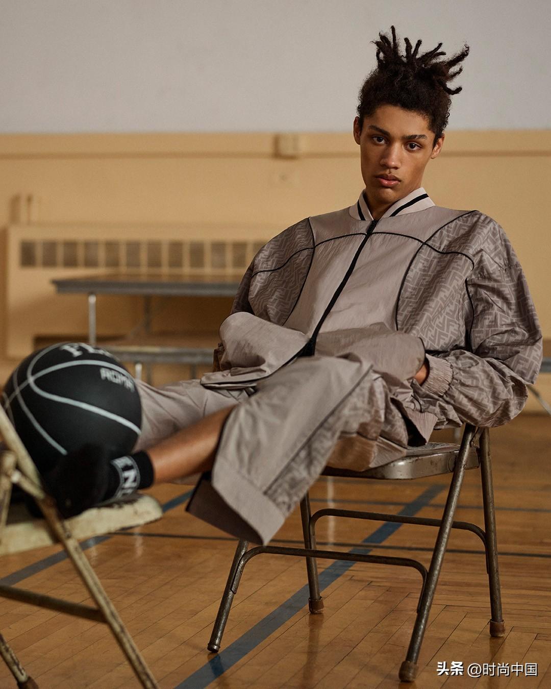 隊服印字版FENDI Roma與FF logo彰顯體育世界的魅力。各款運(yùn)動成衣均為黑灰配色,飾有FENDI Roma羅紋飾邊這一新標(biāo)識?;疑\(yùn)動套裝與隊服款飛行員夾克由輕質(zhì)的科技面料制成,醒目的黑色緄邊神似籃球上的黑色條紋,衣袖與側(cè)邊飾有純色FF logo印花。讓夏日里的“籃球男孩兒”酷感十足。