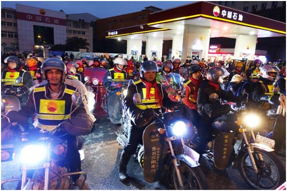 2017年1月,鐵騎大軍在中國石油加油站集結(jié)出發(fā)(資料圖)
