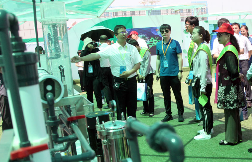 大港石化工作人員向公眾介紹環(huán)保裝置和工藝